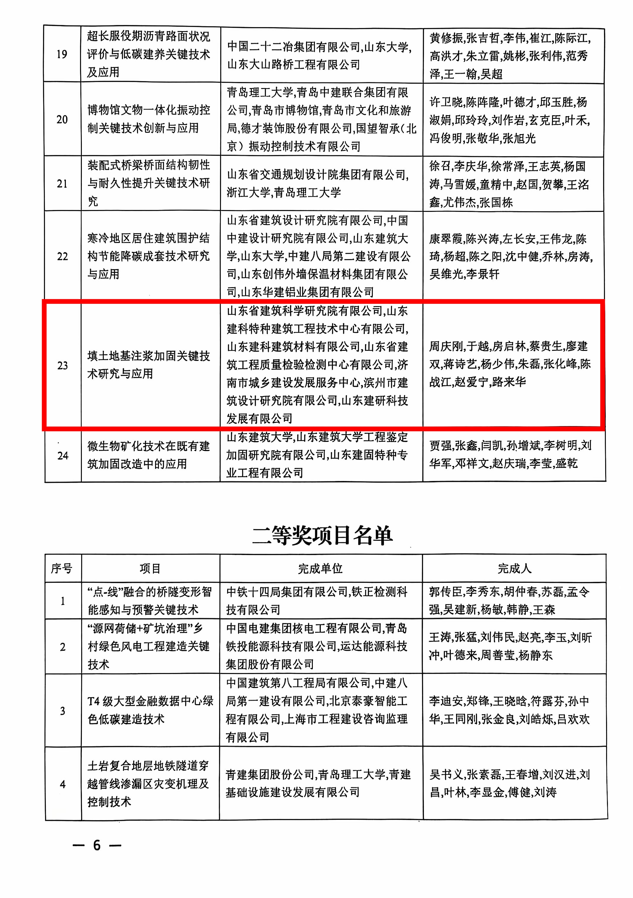 公司獲山東土木建筑科學(xué)技術(shù)獎一等獎